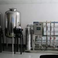 2、預處理→反滲透→中間水箱→水泵→EDI裝置→純水箱→純水泵→紫外線殺菌器→拋光混床→0.2或0.5μm精密過濾器→用水對象(≥16MΩ.CM)(最新工藝)