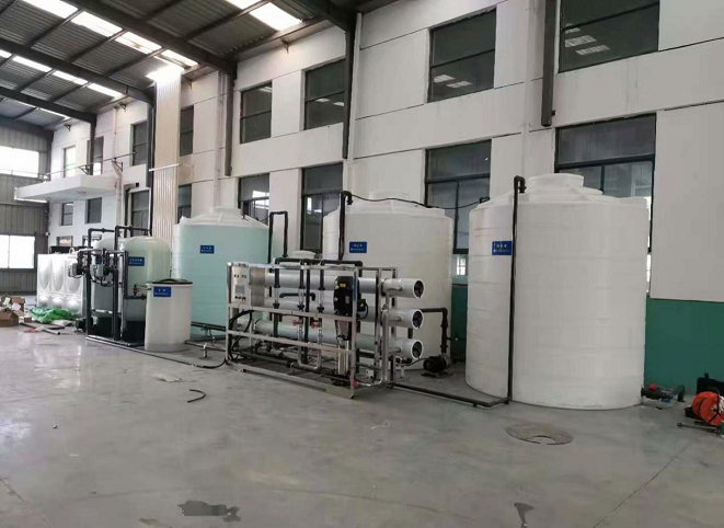 原水→原水加壓泵→多介質(zhì)過濾器→活性炭過濾器→軟水器→精密過濾器→一級(jí)反滲透機(jī)→中間水箱→中間水泵→EDI系統(tǒng)→微孔過濾器→用水點(diǎn)。