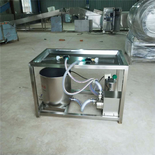 它可將鹽水及輔料配制的腌制液注入肉塊中,再通過真空滾揉使料液充分腌漬,滲透,可疏松肌肉組織結(jié)構(gòu),有利于肌球蛋白溶出,并且由于添加劑對原料肉離子強度的增強作用和蛋白等特點的調(diào)整作用,注入配制的水溶液能使肉質(zhì)嫩化、松軟,從而提高了肉制品的出品率和改善肉制品的嫩度和口感。 可根據(jù)不同工藝要求,通過調(diào)節(jié)步進速度、步進距離、壓肉板間隙及注射壓力,將腌漬液定量、均勻、連續(xù)地注入產(chǎn)品中,從而實現(xiàn)產(chǎn)品的注射效果。 本機采用不銹鋼材料制作,設(shè)計嚴謹、結(jié)構(gòu)合理、操作方便。送肉鏈條可全盤托出,清洗方便,針頭排列為單針單管,設(shè)有自動保護裝置,當注射針頭碰到硬物時,注射針自動彈起,不受損壞,真正達到了注射的肉無死角。全自動鹽水注射機壓力可根據(jù)不同產(chǎn)品不同在0.1----0.9MMPa之間調(diào)整,壓力表顯示注射壓力直觀,方便。全自動鹽水注射機采用變頻調(diào)速器,鏈條步進距離和步進速度及針頭注射速度同步可調(diào)(食品加工機械廠家Tel:138*5448-1138)。