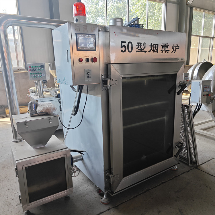 肉食品在餐桌上大家都比較常見,尤其經(jīng)過果木與紅糖熏烤過的口感更是獨特。近年來,大眾越來越注重食品的口感和視覺感官,不僅要吃的好,更是要色香味俱全。為什么現(xiàn)在那么多的肉制品都喜歡用煙熏爐來制作,其主要目的就是在煙熏過程當中給食品增加煙熏風味增加香味,煙熏爐是制作各種香腸、海產(chǎn)品、熏雞、烤鴨等肉食品不可缺少的設備之一,在食品行業(yè)里或者是在肉制品加工過程中應用都是非常廣泛的。(食品加工機械廠家Tel:138*5448-1138)