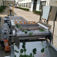 首先需要清洗的蔬菜全部放入水槽,在高壓水流和強力氣泡的作用下,被充分打散、翻滾、清洗、傳送。蔬菜表面的泥沙會脫落,網(wǎng)帶清洗機沉淀到底部隔離倉,防止翻揚回流造成再度污染。從而蔬菜上洗落下來的雜物和小蟲會漂浮在水面,然后被網(wǎng)孔收集,溢出水槽的水流被排除水箱,進入尼龍袋中。蔬菜被蔬菜清洗機洗干凈后,再經(jīng)過噴淋的清洗,網(wǎng)帶清洗機然后通過輸送帶送出,傳送帶末端有一個吹起裝置,沒有被清理掉的雜物被吹掉。(食品加工機械廠家Tel:138*5448-1138)
