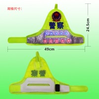 led袖標頂部背面是用魔術貼吊扣與衣袖連接,方便佩戴。底部采用服裝(魔術貼)粘帶,圍繞手臂一周松緊可自由調節(jié)。
