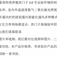 請(qǐng)?zhí)峁B(yǎng)雞場(chǎng)圖片和視頻,我們要對(duì)比視頻和圖片,二則缺一不提供技術(shù)支持,非誠(chéng)勿擾,本產(chǎn)品價(jià)格貴,尋求低價(jià)產(chǎn)品的勿擾,不能提供圖片視頻二則缺一者勿擾。