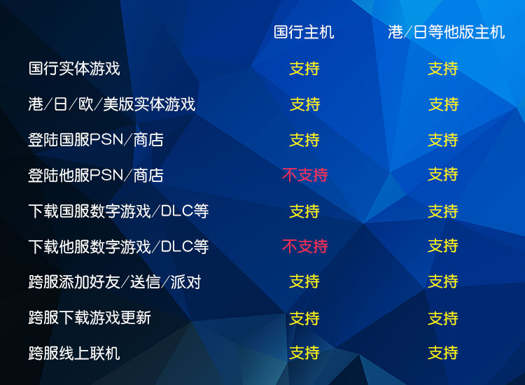 國行主機(jī)與其他版本主機(jī)對(duì)比: