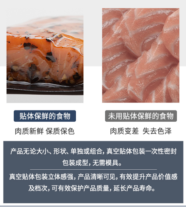 它能保持食品的色澤、風(fēng)味和柔軟性,具有貼身包裝、立體顯示和真空保存的雙重功能。其特點(diǎn)如下: