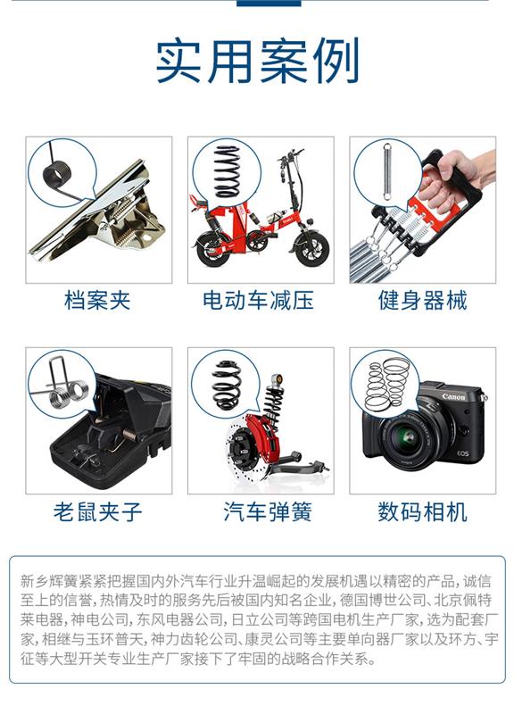 輝簧彈簧公司主要開發(fā)、生產(chǎn)、經(jīng)營汽車電機(jī)電器彈簧。我公司生產(chǎn)的彈簧主要分類有壓縮彈簧(普通壓縮彈簧,中凹?jí)嚎s彈簧,中凸壓縮彈簧,塔型壓縮彈簧,漸近壓縮彈簧,左旋壓縮彈簧,右旋壓縮彈簧)、扭轉(zhuǎn)彈簧(普通扭轉(zhuǎn)彈簧,雙扭轉(zhuǎn)彈簧,異形扭轉(zhuǎn)彈簧,左旋扭轉(zhuǎn)彈簧,右旋扭轉(zhuǎn)彈簧)、拉伸彈簧(普通拉伸彈簧,單鉤拉伸彈簧,雙鉤拉伸彈簧,掛鉤拉伸彈簧,拉環(huán)拉伸彈簧,非密圈拉伸彈簧,左旋拉伸彈簧,右旋拉伸彈簧)、異形彈簧、渦卷彈簧、卡簧擋圈、波形彈簧、碟形彈簧、沖壓彈片等彈性元件。