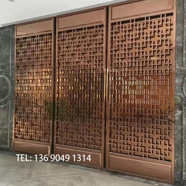 鈦金不銹鋼邊框鋁雕刻屏風(fēng)裝飾隔斷定做廠家