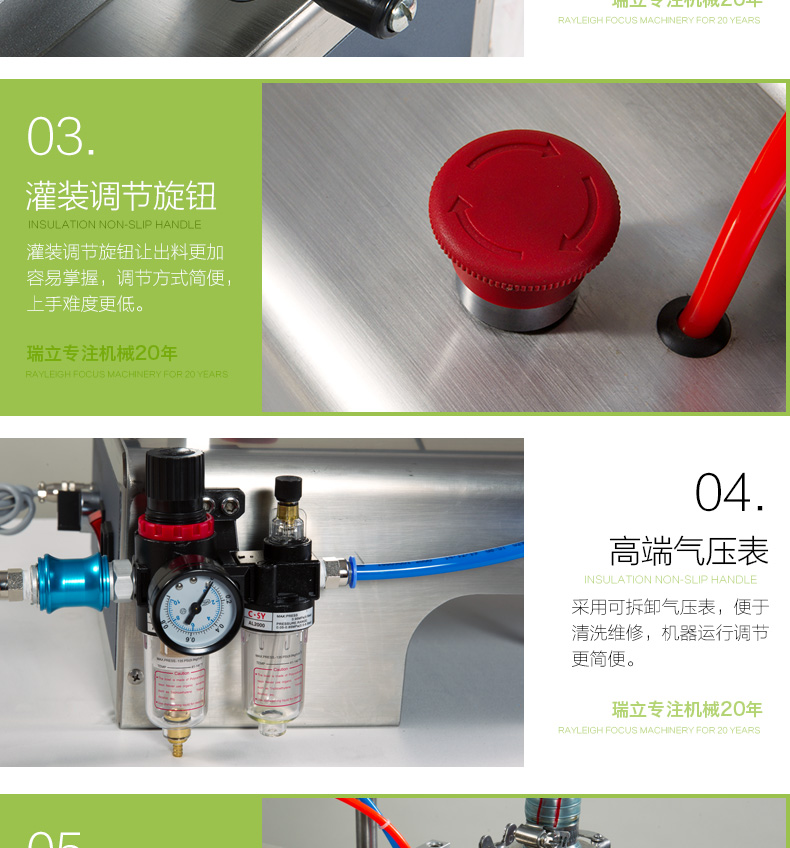· 自動(dòng)進(jìn)行連續(xù)灌裝。而當(dāng)機(jī)器處于"手動(dòng)"狀態(tài),操作人員踩動(dòng)踏板,來(lái)實(shí)現(xiàn)灌裝 ,若一直踩住不放,則也變?yōu)樽詣?dòng)連續(xù)灌裝的狀態(tài)。
