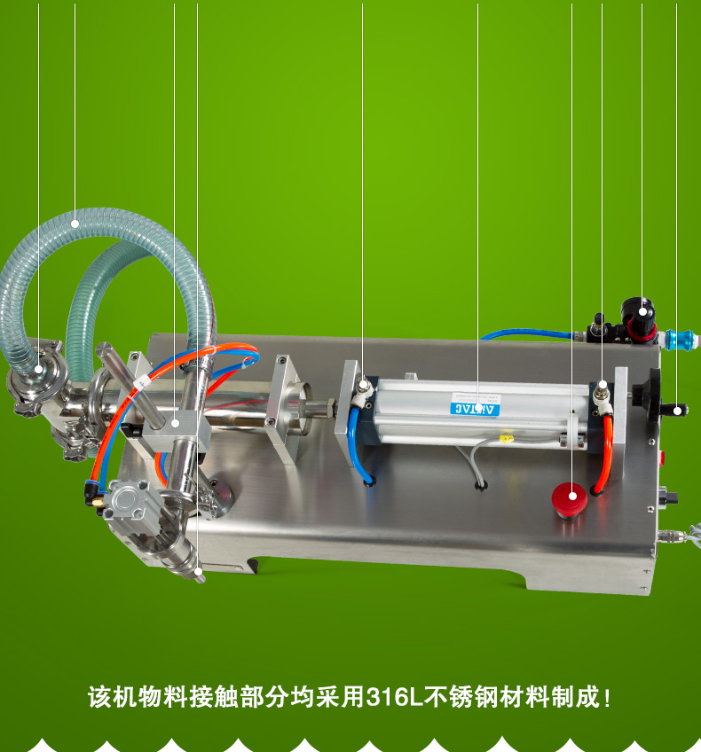 膏體灌裝機(jī)是利用壓縮空氣作為動(dòng)力,由精密氣動(dòng)元件構(gòu)成一個(gè)自動(dòng)灌裝系統(tǒng),結(jié)構(gòu)簡(jiǎn)單、動(dòng)作靈敏可靠、調(diào)節(jié)方便,適應(yīng)各種液體、粘稠流體、膏體灌裝也適用在易燃易爆環(huán)境下工作,是制藥、化工、食品,化妝品等行業(yè)最理想的灌裝設(shè)備