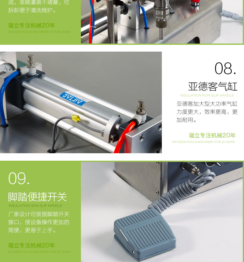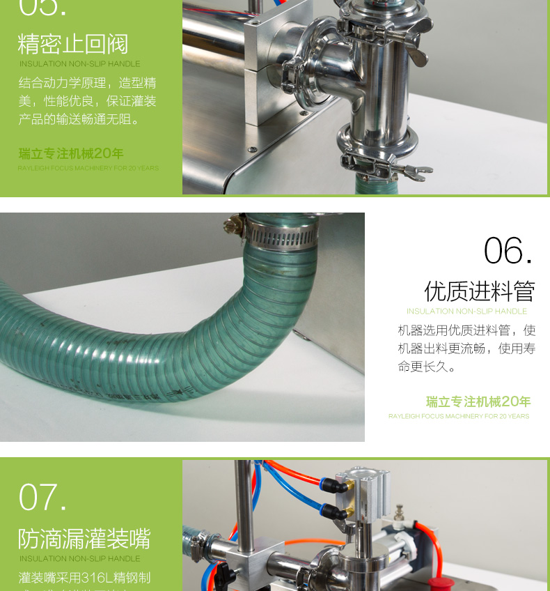 E、灌裝量和灌裝速度均可任意調(diào)節(jié),灌裝精度高;