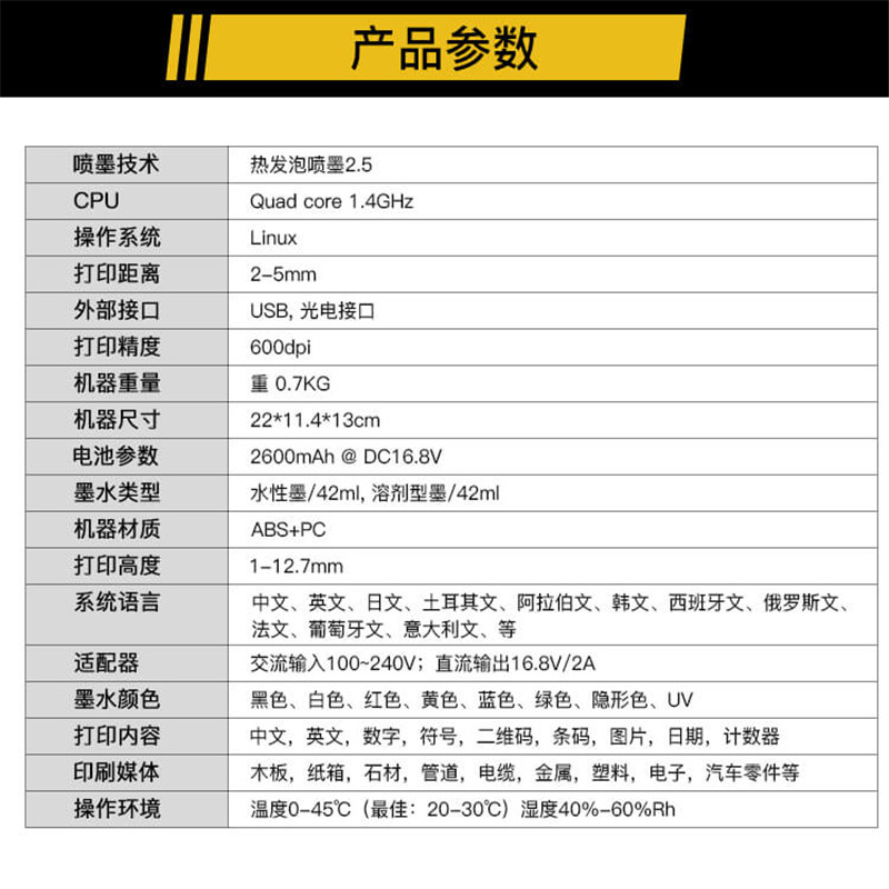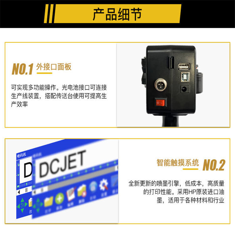 手動(dòng)生產(chǎn)日期噴碼機(jī)使用的耗材是墨盒,類似打印機(jī)里面的墨盒一樣,不使用的時(shí)候取下來墨盒的容量是47毫升,可以打印10萬以上的日期(根據(jù)字體大小,內(nèi)容不同而有所不同).墨水很耐用,使用的是速干墨水,噴印上產(chǎn)品是秒干的.手動(dòng)生產(chǎn)日期噴碼機(jī)的屏幕是4.7寸的彩色觸摸顯示屏,靈敏度很高,操作很方便