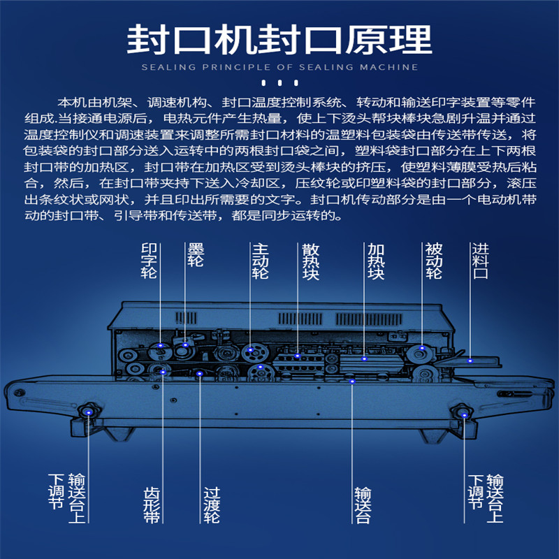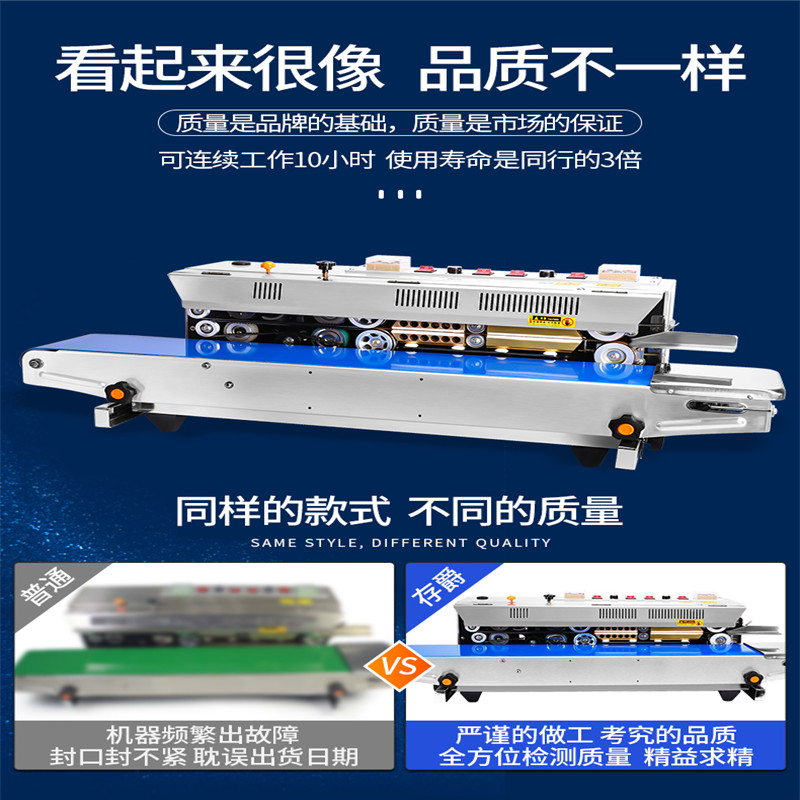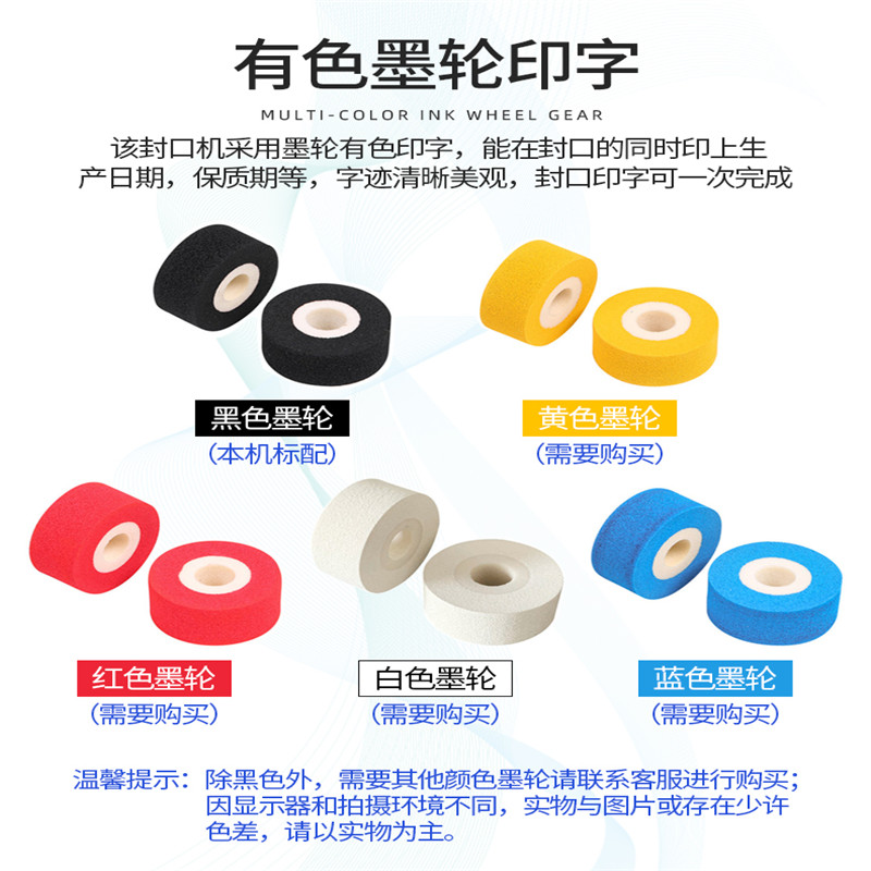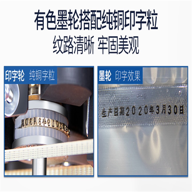 3.該封口機可配壓花輪和印字輪,隨需要更換字型,能在封口同時印上出廠日期,保質(zhì)期,保存期等標志,封口花紋及標志字跡清晰美。