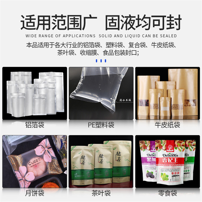 1.可用于食品袋、醫(yī)藥、實驗室、日用化妝品、土特產(chǎn)、化工產(chǎn)品、電子產(chǎn)品、蔬菜種子、服裝、電子原件、小五金、土特產(chǎn)等產(chǎn)品的包裝封口。廣泛 應用于工廠、商店、零售部門,服務性行業(yè)及科研部門等各行業(yè)。