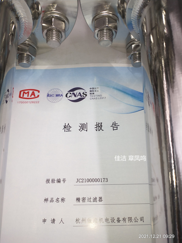 杭州佳潔長期生產(chǎn)食品級不銹鋼過濾器,產(chǎn)品經(jīng)第三方檢測認證,公司生產(chǎn)的濾芯濾材經(jīng)第三方按FDA標準檢測認證,各個微米,顆粒物數(shù)量經(jīng)第三方檢測認證,除塵、除油水、除菌效果經(jīng)第三方檢測認證。杭州佳潔提供不銹鋼過濾器GMP認證、AIB認證材料,幫助企業(yè)順利通過生產(chǎn)認證考核。