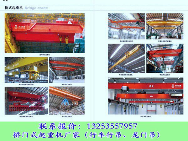 為了方便車間工作,橋式起重機(jī)制定了單軌道的、單梁的、雙梁的、伸縮梁的、堆垛機(jī)等各種型號,適用范圍較廣,特別適合現(xiàn)代化生產(chǎn)輸送機(jī)。是如今大型設(shè)備加工企業(yè)車間吊裝重物的重要設(shè)備。