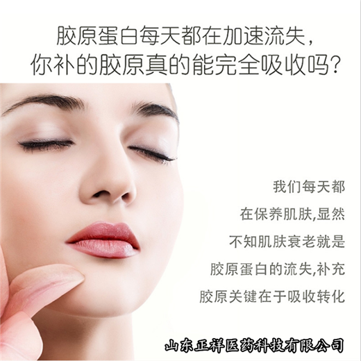 膠原蛋白亦可用于食品,早在十二世紀Bingen的St.Hilde-gard就描述了利用小牛的軟骨湯作為藥物來治療關(guān)節(jié)疼痛,在相當長的一段時間里,含膠原的一些產(chǎn)品被人們認為對關(guān)節(jié)是很有益處的。因為它具有適用于食品的一些屬性:食用級通常外觀為白色,口感柔和,味道清淡,易消化??梢越档脱视腿ズ湍懝檀?,并可以增高體內(nèi)某些缺乏的必需微量元素使之維持在一個相對的正常范圍之內(nèi),它是一種理想的降血脂食品。此外,有研究表明,膠原蛋白可以協(xié)助排除體內(nèi)的鋁,減少鋁在體內(nèi)的聚集,降低鋁質(zhì)對人體的危害,并一定程度上促進指甲和頭發(fā)的生長。Ⅱ型膠原是關(guān)節(jié)軟骨中的主要蛋白,因而是潛在的自身抗原??诜竽苷T導T細胞產(chǎn)生免疫耐受,從而抑制T細胞介導的自身免疫性疾病。膠原多肽是膠原或明膠經(jīng)蛋白酶等降解處理后制得的具有較高消化吸收性、分子量約為2000~30000的產(chǎn)物,不具有明膠的凝膠性能,市場上銷售的膠原多為膠原多肽。
