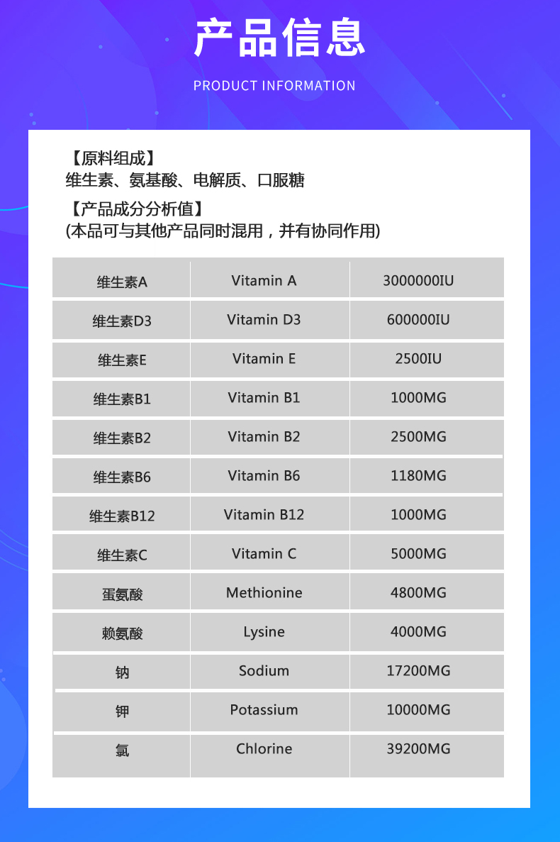 >供應(yīng)>農(nóng)業(yè)網(wǎng)>農(nóng)用物資>飼料添加劑>獸用電解多維飼料添加劑寡聚糖多維雞鴨鵝鵝豬牛羊用 飼料添加劑,維生素單體,預(yù)混合飼料,復(fù)合維生素 脫霉劑