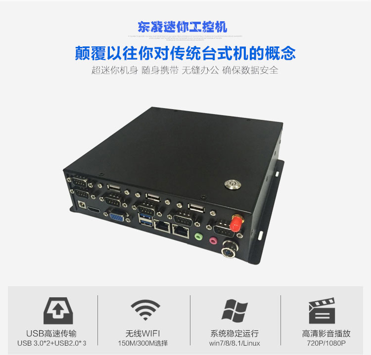 這款產(chǎn)品是由賽揚J1900四核處理器,無風(fēng)扇設(shè)計,配置2G內(nèi)存(可升級),搭載32G固態(tài)硬盤(可升級),預(yù)裝win7 32位系統(tǒng)的標(biāo)準(zhǔn)配置,外置6個RS-232串口(RS-485),其中還有5個USB接口(有兩個是USB3.0高速接口),雙RJ45網(wǎng)口,可選配WiFi模塊以及9~36v寬壓模塊,可添加4G全網(wǎng)通模塊,適用于各種物聯(lián)網(wǎng)設(shè)備控制,完美結(jié)合,功耗低,實用性強(qiáng),性價比高,居家、工業(yè)、辦公等好幫手。