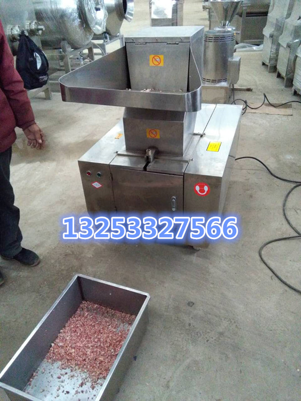 該機特別適合干、鮮牛大骨、豬骨、羊骨、驢骨、雞骨架等各種動物大骨和魚骨類的破碎,廣泛使用于各種香腸、火腿腸、午餐肉、丸子、速凍食品、寵物食品和凍肉類等堅硬物料的破碎。