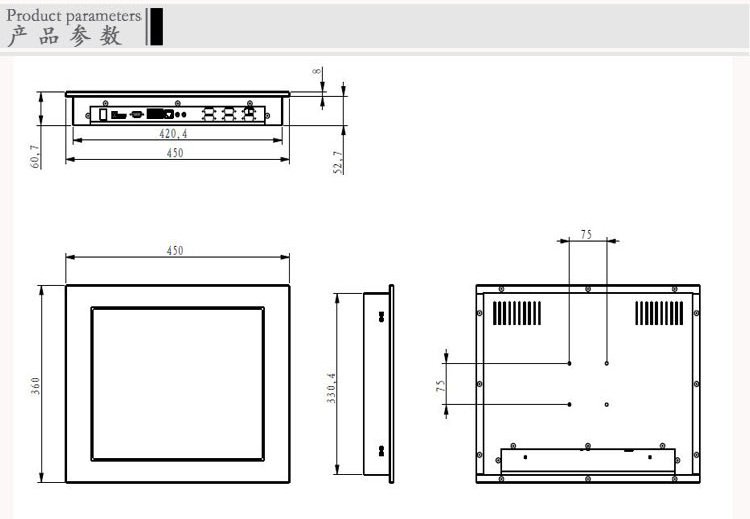 尺寸 總體尺寸(長×寬×厚) 450×360×60.7
