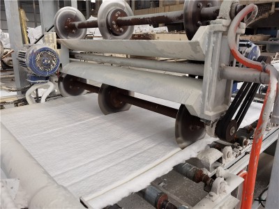 硅酸鋁針刺毯雙面針刺流水線,其設(shè)備與生產(chǎn)均處在水平。各種硅酸鋁針刺毯,采用不同材質(zhì)的原料(如焦寶石、SiO2、Al2O3、皓英砂等混配)所成纖維經(jīng)沉降針刺、熱定型、縱橫切、打卷等工序制成。質(zhì)地均勻,表面平整,具有優(yōu)良的抗拉強(qiáng)度,因硅酸鋁針刺毯本身不含粘結(jié)劑,所以大大提高了耐熱程度。