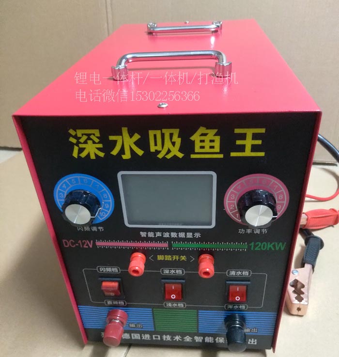 廣州浮魚(yú)王電器廠是捕漁機(jī),電漁器,捕漁機(jī)的優(yōu)質(zhì)生產(chǎn)制造廠家,竭誠(chéng)為您提供捕漁機(jī)*的捕江湖捕漁機(jī),深水打漁機(jī),背用電漁器,大型捕漁機(jī)設(shè)備深水捕漁器工具,美帝電器供應(yīng)大功率捕漁器大功率船用機(jī)頭等系列產(chǎn)品現(xiàn)在的,捕漁器五花八門(mén)各式各樣的都有,柴油發(fā)電機(jī)組捕漁器,這些捕漁器在上世紀(jì)末可是風(fēng)靡一時(shí),尤其是在長(zhǎng)江流域,至今很多地方還都在使用這種機(jī)器!但是這些都是老式的機(jī)器,技術(shù)含量低,廢油費(fèi)電,價(jià)格不菲,體積大重量沉而且對(duì)人非常危險(xiǎn)!那么如今在中國(guó)普及的是脈沖電子捕漁機(jī)(很多商家都給他冠上超聲波的名字)這種機(jī)器也可以勉強(qiáng)叫它超聲波捕漁器,因?yàn)槠涔ぷ髟砗芏嗟胤竭€是利用了超聲波的原理,在目前是很普及,其優(yōu)點(diǎn)是捕漁器功能強(qiáng)大,省電,重量輕,體積小,便于攜帶,捕漁效果好,價(jià)格便宜,對(duì)人安全,*適合普通老百姓娛樂(lè)使用或漁民專(zhuān)業(yè)捕漁器捕漁使用!捕漁機(jī)使用方法介紹:1.制作一雙網(wǎng)桿:做兩個(gè)直徑為200毫米左右的金屬圓環(huán)(*好用鋼管,銅條)套上漁網(wǎng)作為漁網(wǎng)電極,兩漁網(wǎng)電極分別接上一根絕緣導(dǎo)線(xiàn),再分別固定在兩根2米左右的竹竿上。2.將12V電瓶的正負(fù)極接在捕漁機(jī)的電瓶夾上,然后將電網(wǎng)兩根絕緣導(dǎo)線(xiàn)的另一端,分別接在捕漁器的輸出接線(xiàn)柱上紅色輸出接正極,黑色輸出接負(fù)極這法有點(diǎn)講究,正極輸出是機(jī)撈魚(yú)的網(wǎng)那邊,負(fù)極就接探針那邊。3,聲波捕漁器上的高低壓開(kāi)關(guān)由水深淺決定,深水用高壓,淺水用低壓,可節(jié)省電能。4,捕漁機(jī)上的頻率調(diào)節(jié),是捕漁的關(guān)鍵,正確使用將電位器調(diào)在適當(dāng)位置,使繼電器發(fā)出清脆的聲音而不發(fā)沉,捕漁效果佳!5,手持竹竿,將兩電棒置于水中。兩竿相距1至5米(距離根據(jù)機(jī)器功率大小而定,背負(fù)機(jī)器一般相距1-2米,船載機(jī)一般相距3-5米),繼續(xù)按動(dòng)開(kāi)關(guān),即可電暈魚(yú)。斷開(kāi)開(kāi)關(guān)即可撈魚(yú)!本機(jī)可以打到深度10米寬度7米價(jià)格2880元