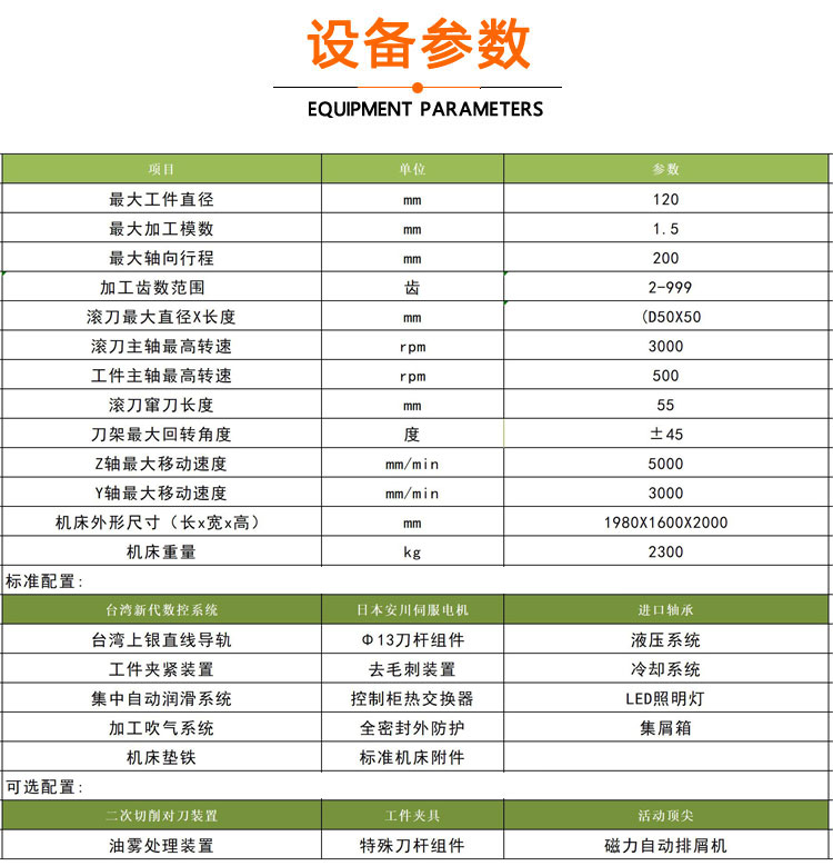 9、 可選配二次切削對(duì)刀功能:在齒輪粗滾熱處理后,精加工硬度HRC55°±2°的硬齒面加工。