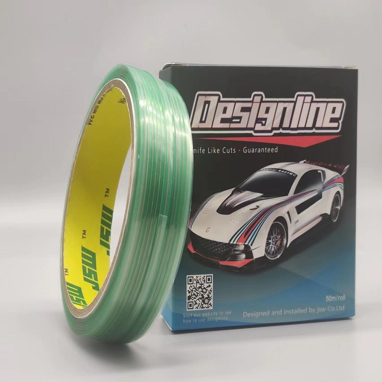 Made under the JSW brand designline tape Price concessions, 90° or 360° turns do not drop line,Knifeless Design Line easy modeling Knifeless is a tape that can be used to cut graphic film without a need of a knifeThe tape has a visible high strength filament in the middle which is used to do the cuttingA clean sharp cut is made along the entire lengthKnifeless Design Line The excess tape removes cleanly leaving no adhesive residue Knifeless Design Line The tape is extremely flexible which turns in any direction conforming to even the tightest contours and edges of any surface it is applied to, or can be pulled straight creating precise cut lines