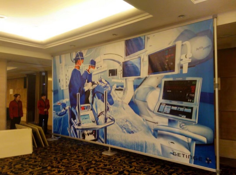 3, 活動背景非伸縮性快展背景板搭建:高飽和度純布畫面--高清,高飽和,亞面,寬幅,細膩。