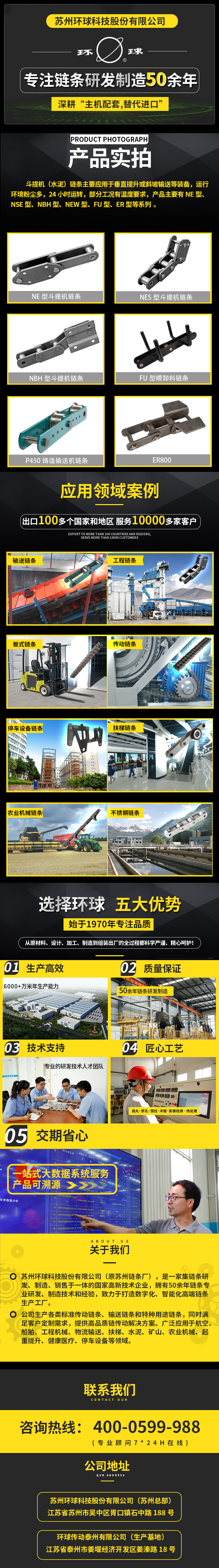 環(huán)球斗提機鏈條主要應用于垂直提升或斜坡輸送等裝備,運行環(huán)境粉塵多,24小時運轉,部分工況有溫度要求,產品主要有NE型、NSE型、NBH型、NEW型、FU型、ER型等系列。