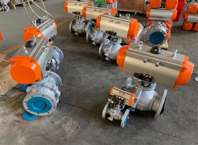氣動單作用球閥采用新型系列GT型氣動執(zhí)行器,有雙作用式和單作用式(彈簧復(fù)位),齒輪齒條傳動,安全可靠;大口徑閥門采用系列AW型氣動執(zhí)行器拔叉式傳動,結(jié)構(gòu)合理,輸出扭矩大,有雙作用式和單作用式。