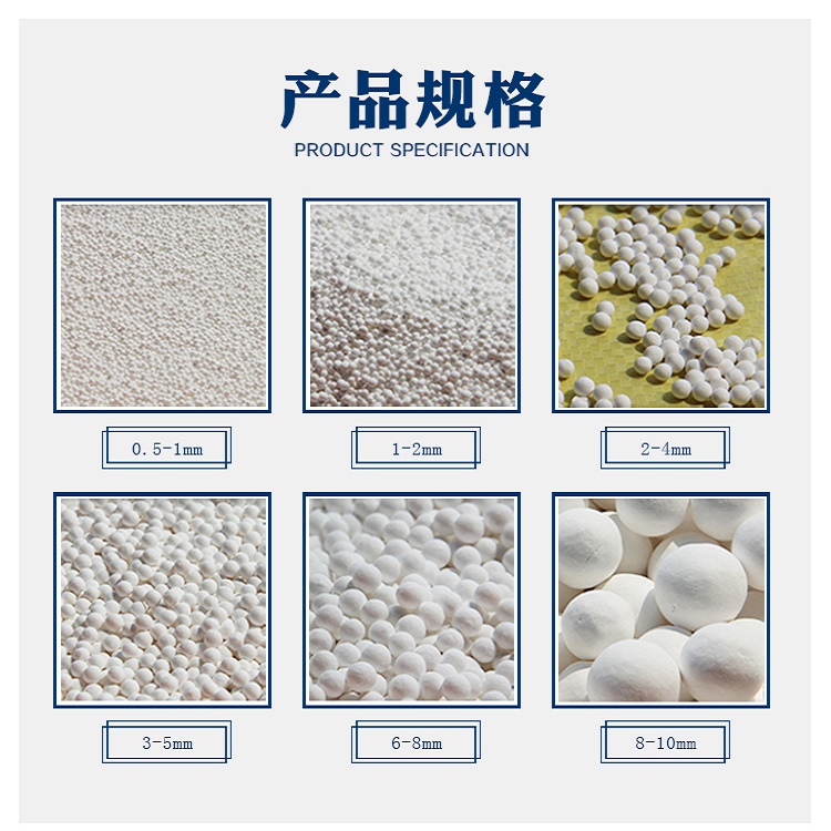 活性氧化鋁干燥劑:本品是一種多微孔球狀物質(zhì),具有很強(qiáng)的吸附功能,比表面積大、抗壓硬度高,使用壽命長,并能通過再生方法反復(fù)使用。本品為白色、球狀多孔性物質(zhì)無毒、無臭、不粉化、不溶于水。廣泛應(yīng)用于石油化工、化工、紡織、治金等行業(yè)的儀表風(fēng)干燥,變壓吸附空分裝置中,吸附露點(diǎn)可達(dá)-41度以上,也可用于鋼鐵、石油裂解氣、乙稀、丙稀中的液相及氣體深度干燥。