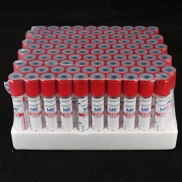 產(chǎn)品說明:采血管內(nèi)璧均勻涂有防止掛璧的硅油,同時添加了促凝劑。促凝劑可激活纖維蛋白酶,使可溶性纖維蛋白變?yōu)椴豢扇艿睦w維蛋白多聚體,進而形成穩(wěn)定的纖維蛋白凝塊??焖傺骞芸稍?分鐘內(nèi)使采集的血液凝固,適用于急診血清系列化試驗。
